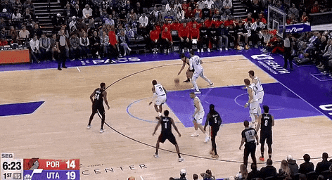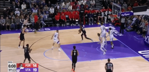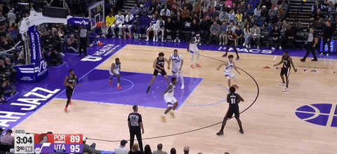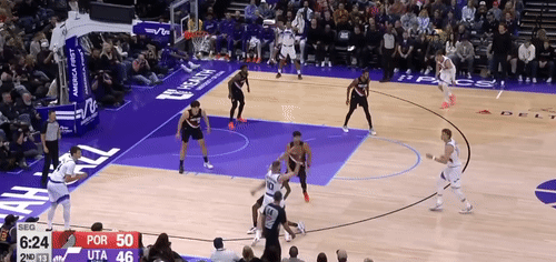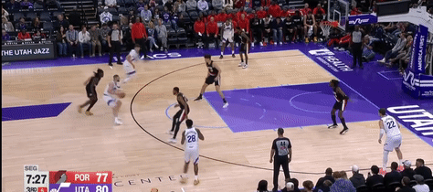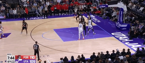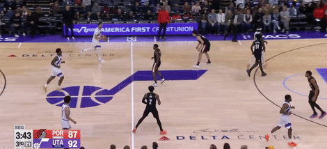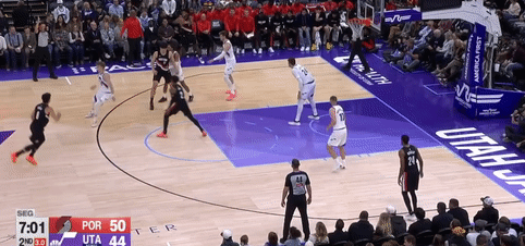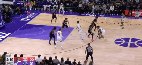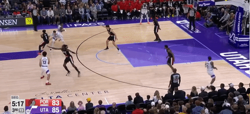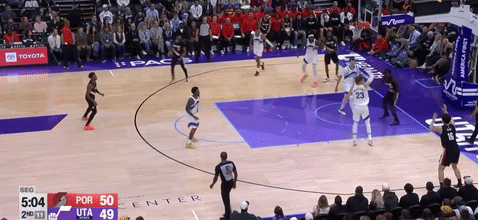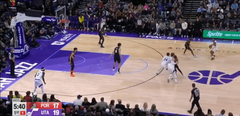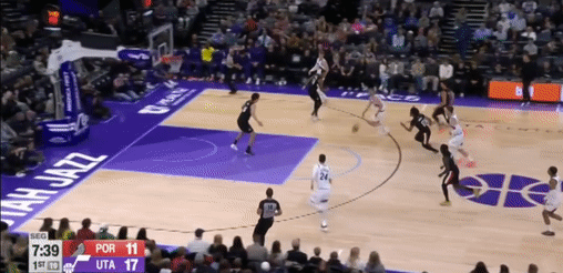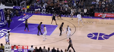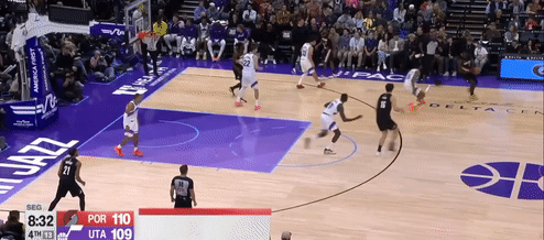 第四节爵士班巴拿下8分,开拓者朱-霍勒迪拿下9分,最终爵士132-129战胜开拓者