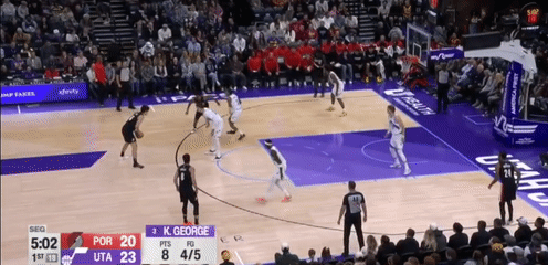 第二节爵士基扬特-乔治拿下6分,开拓者格兰特拿下8分,半场结束爵士60-64落后开拓者