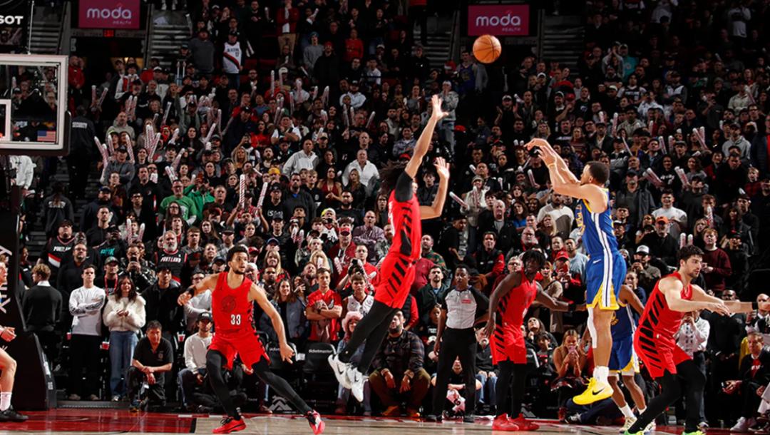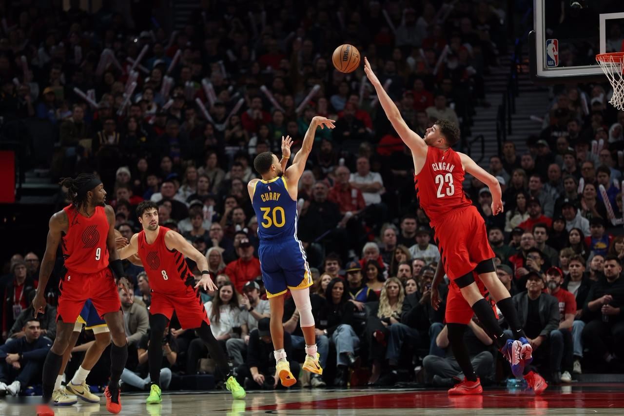 我们或许不该苛责一个37岁的老后卫。开拓者对库里的扑防堪称疯狂,为了不让库里舒服,这场比赛克林根只打了不到22分钟,但库里的三分球还是如雨点般从球场的各个角落飞向篮筐。在比赛还剩不到两分钟时,库里在中线就被夏普和格兰特双人夹击,靠着一个前场篮板觅得出手机会,连续点飞格兰特和西索科,命中了他这场比赛里的第12个三分球,让勇士艰难领先两分。